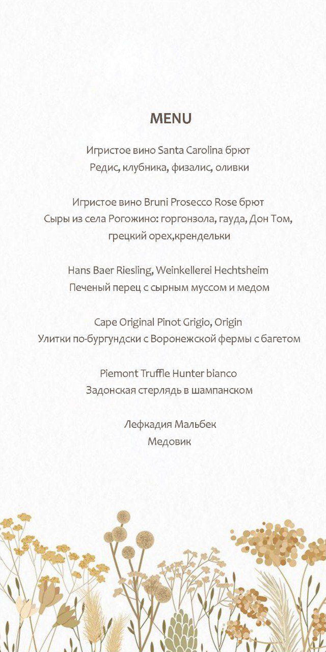 • Дегустация вин в главном выставочном зале за особо сервированным столом (6 сетов вин +6 подач блюд, количество мест до 18). Начало 19:00